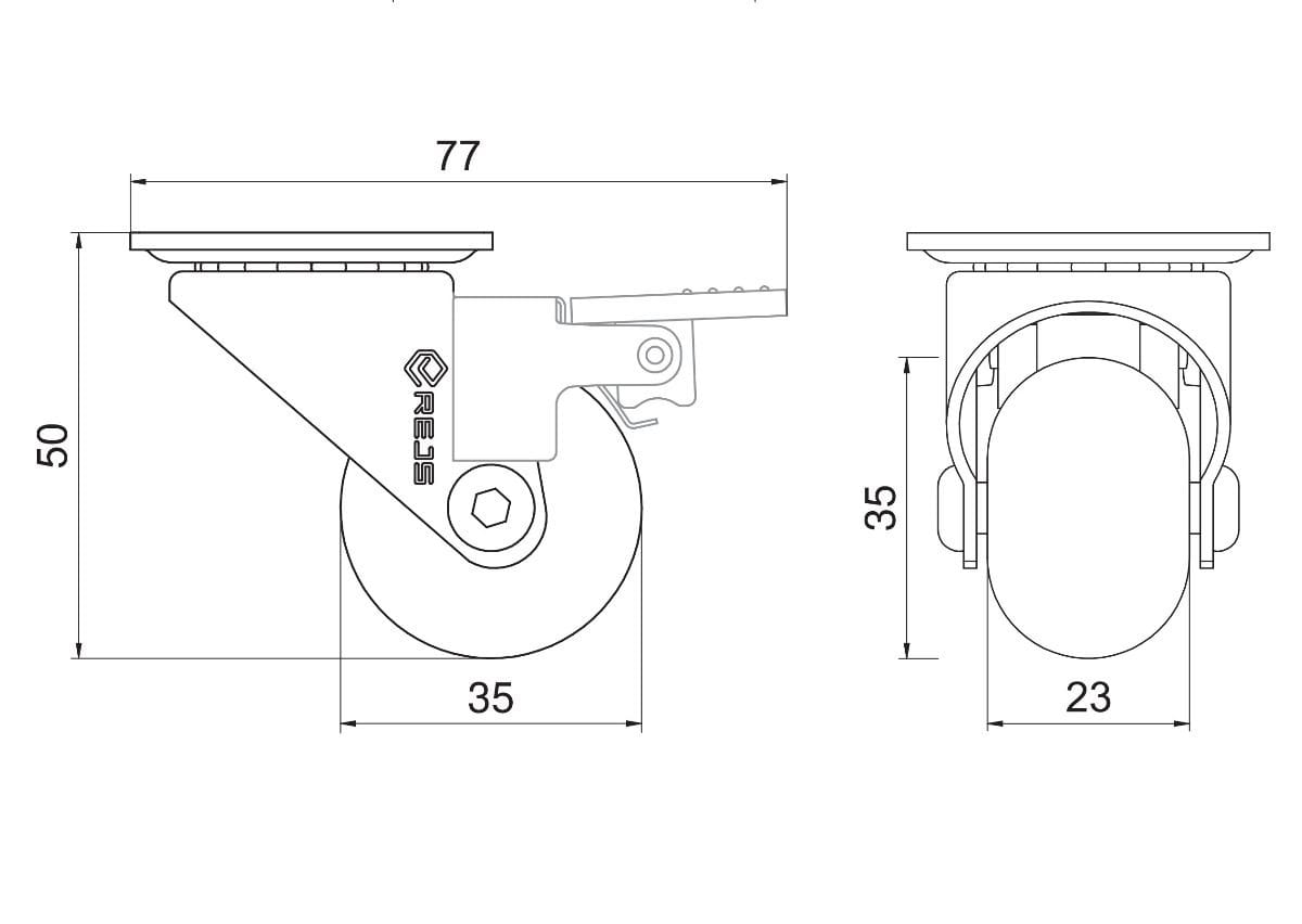 SUPRA - kółko meblowe obrotowe średnicy 35 mm. Opony kółek są wykonane z wysokiej jakości przezroczystego materiału, który nie niszczy powierzchni podłóg. Swobodny obrót 360° dzięki łożyskowaniu w płaszczyźnie poziomej. Obrotowa, łożyskowana konstrukcja ze stali zapewnia udźwig 30 kilogramów.