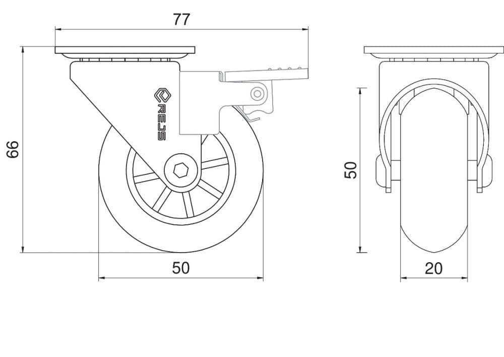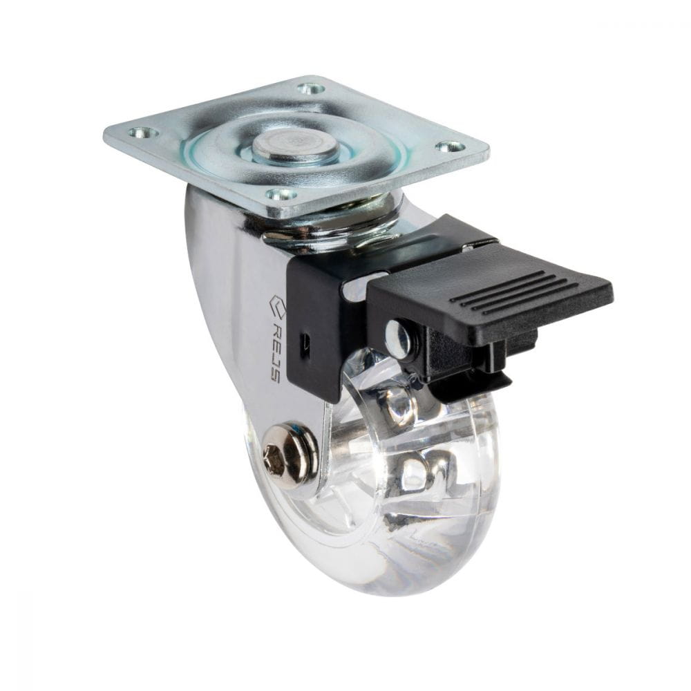 SUPRA - kółko meblowe obrotowe średnicy 50 mm. Opony kółek są wykonane z wysokiej jakości przezroczystego elastycznego materiału, który nie niszczy powierzchni podłóg. Swobodny obrót 360° dzięki łożyskowaniu w płaszczyźnie poziomej. Obrotowa, łożyskowana konstrukcja ze stali zapewnia udźwig 40 kilogramów.
