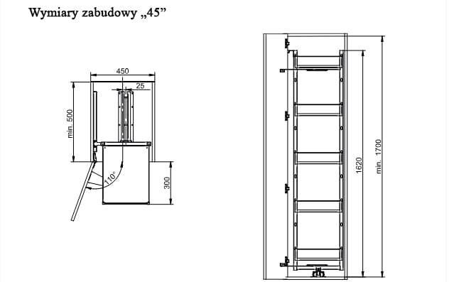- minimalna wysokość wewnętrzna szafki – 170 cm