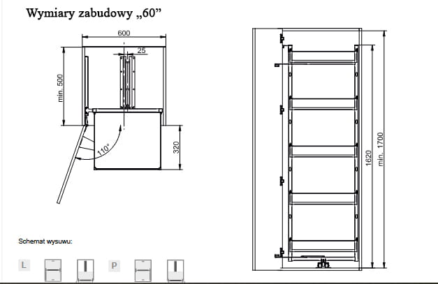 - minimalna wysokość wewnętrzna szafki – 170 cm
