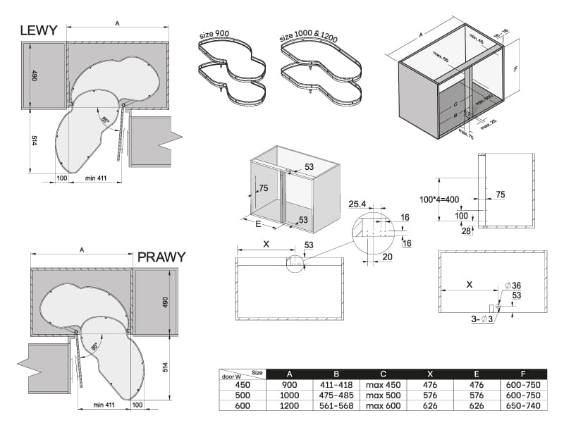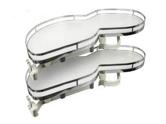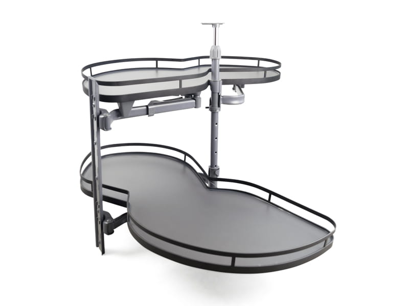 Półka SUPLIMO przeznaczona jest do szafki narożnej o minimalnej długości 100 cm. System pełnego wysuwu umożliwia łatwy dostęp do najdalej położonych przedmiotów, co znacznie ułatwia organizację kuchni. W rezultacie każdy przedmiot, nawet ten umieszczony w najdalszym zakątku szafki, jest łatwo dostępny bez konieczności wyciągania innych rzeczy. Stworzono ją dla każdego, kto szuka wygody i nowoczesnych rozwiązań w swojej kuchni. Kształt półek został zaprojektowany tak, by maksymalnie wykorzystać przestrzeń szafki. Półki Suplimo umożliwiają regulację wysokości, co pozwala na dostosowanie ich do różnorodnych rozmiarów przechowywanych przedmiotów. Funkcja cichego domyku umożliwia automatyczne, ciche domykanie półek. Dzięki temu półki zamykają się powoli i bezszelestnie, eliminując nieprzyjemne trzaski i hałasy, które mogą wystąpić przy zwykłym zamykaniu. Wyrób składa się z dwóch półek wykonanych z wysokiej klasy płyty meblowej ograniczonych relingami zabezpieczającymi przechowywane produkty przed spadkiem. Każda z półek wysuwa się oddzielnie ułatwiając dostęp do artykułów na nich się znajdujących. Półka SUPLIMO zaprojektowana została z myślą o udźwigu do 12 kg na półkę, świetnie sprawdzając się przy przechowywaniu ciężkich przedmiotów. Niezależnie od tego, czy są to ciężkie garnki, czy naczynia żaroodporne, półka gwarantuje stabilność i wygodę użytkowania, zapewniając bezpieczeństwo przechowywanych rzeczy. Wyroby są wykonane w wersji lewej lub prawej.