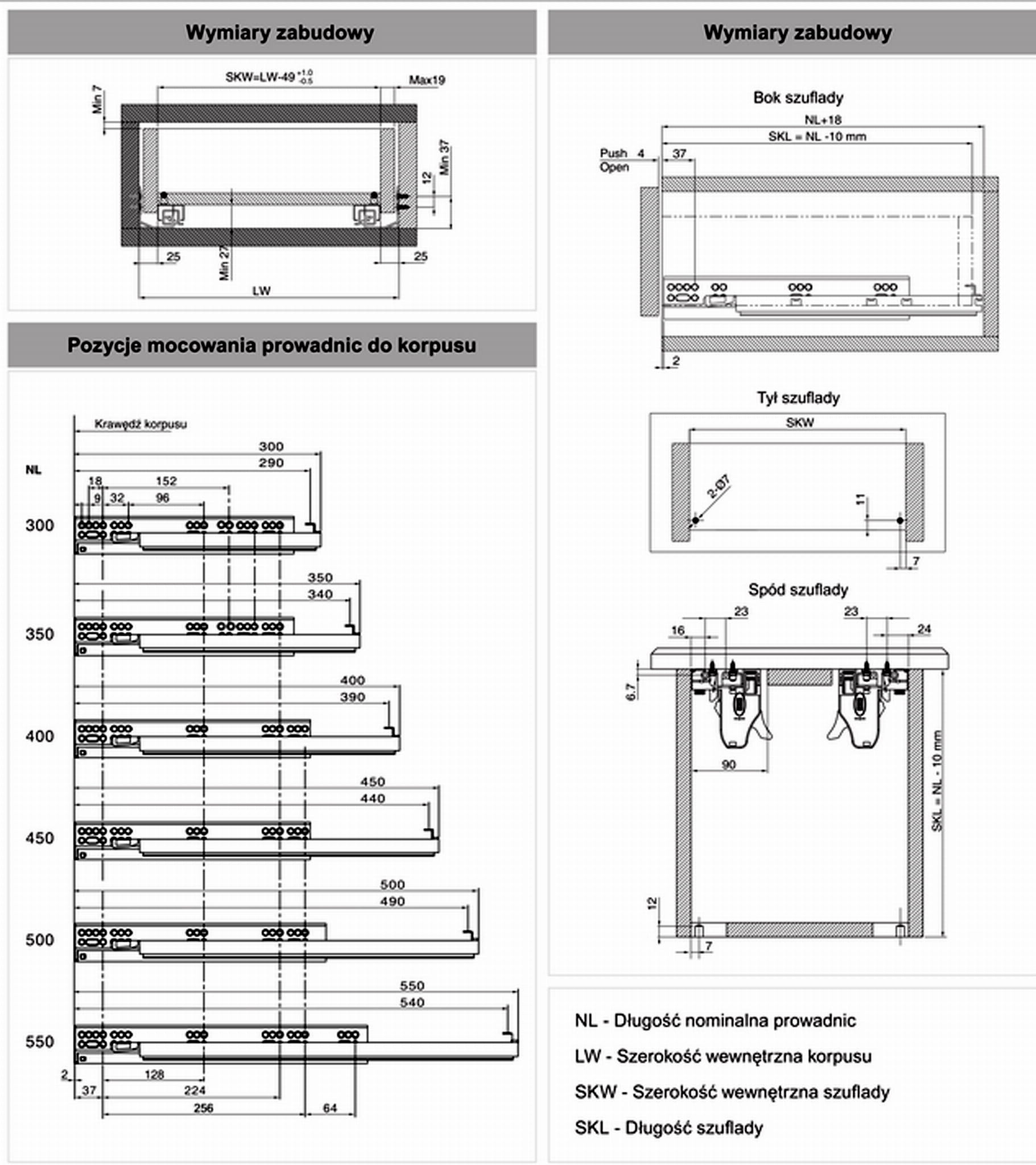 - przystosowane do szuflad o różnej grubości płyt
