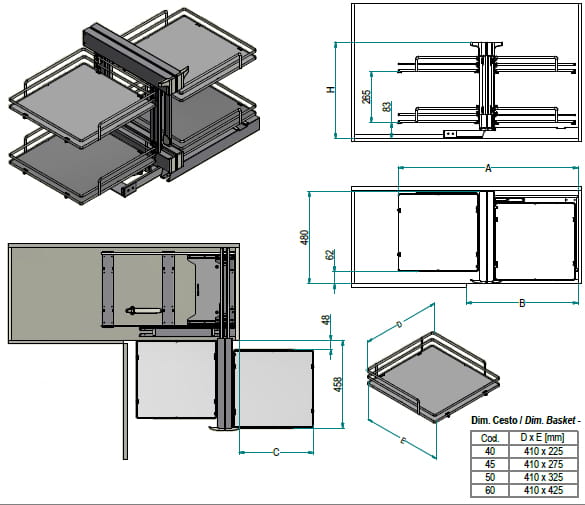 Wysuwane kosze narożne tzw. kornery cieszą się dużym uznaniem. Wyrób ten pozwala Państwu przechowywać wszystkie swoje produkty w sposób zorganizowany i uporządkowany. Wszystkie kosze można całkowicie wysunąć z korpusu szafki. Systemy narożne Compact ELLITE mają zastosowanie w szafkach z frontem na zawiasach. Linia wyrobów ELLITE charakteryzuje się wykonaniem dna koszy z pełnej płyty w kolorze białym lub tytanowym. Solidne prowadnice typu Tandem firmy Grass pozwalają na ciche i delikatne domknięcie, a pełen wysuw wyrobu zapewnia szybki i łatwy dostęp do przechowywanych produktów. Kosze narożne Compact ELLITE dostępne są w różnych wielkościach ( patrz tabela).