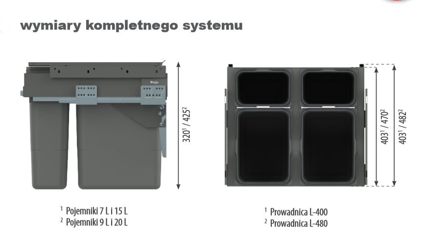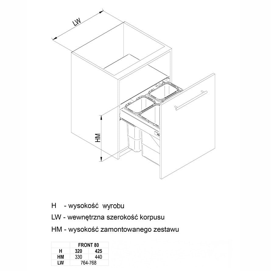 Szuflada SEGREGO z 4 pojemnikami na odpady do "80" REJS
