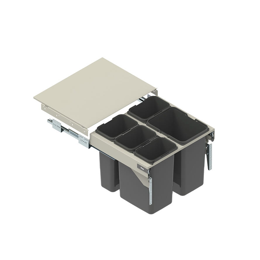 System segregacji odpadów Segrego to funkcjonalna i wygodna w użytkowaniu szuflada z pojemnikami na śmieci, którą można w pełni wysunąć z szafki, a tym samym ułatwić sobie segregację odpadów. Zastosowane w Segrego prowadnice z pełnym wysuwem i miękkim dociągiem zapewnią komfortowy ruch, a odpowiednio zabezpieczone przed zabrudzeniem tory jezdne ułatwiają utrzymanie czystości.